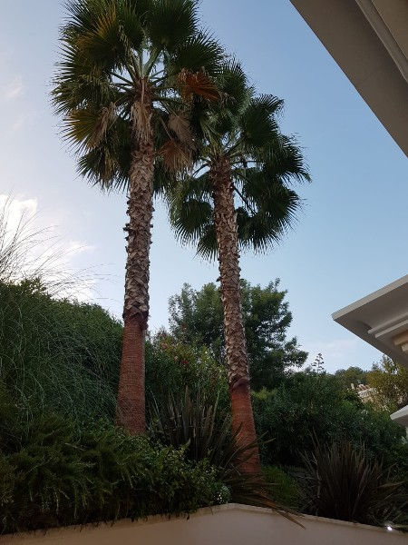 Nettoyage de deux troncs de palmier Washingtonia sur Mandelieu La Napoule réalisé par la société CRJ.