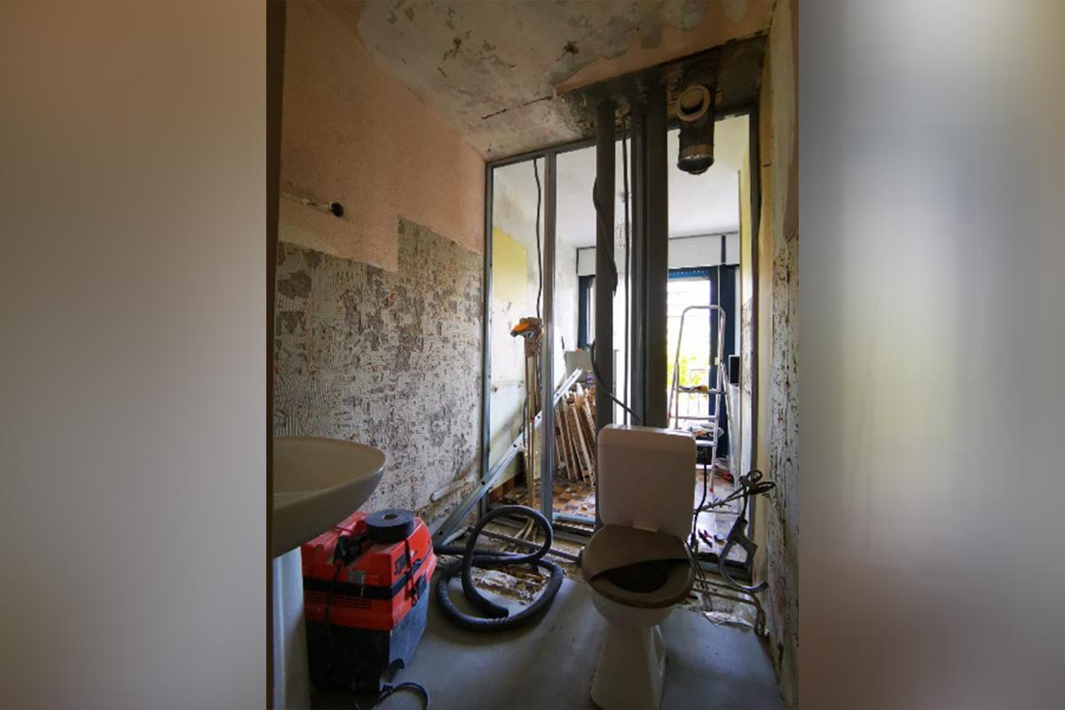 Transformation d’une ancienne salle de bain des années 80 en une salle de douche mise au goût du jour.